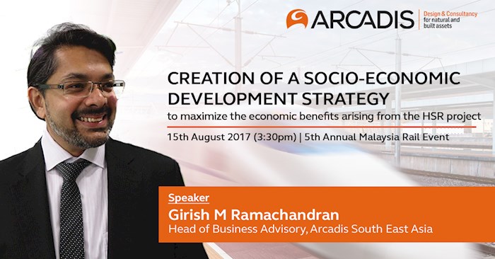 Arcadis is pleased to announce that we will be speaking at the 5th Annual Malaysia Rail event on the 15th August. Our South East Asia Business Advisory leader, Girish Ramachandran will be discussing how stakeholders can maximize their opportunities around HSR investment to create the biggest socio-economic impact in the Asia region – session titled ‘Creation of a Socio-Economic Development Strategy to maximize the economic benefits arising from the HSR project’.