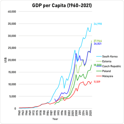 Malaysia’s economy and average wage has stagnated since the 1970s, while the economy and average wage of the countries – (like Singapore, South Korea as well as East European nations like the Czech Republic, Estonia and Poland) – who were on par with Malaysia, has grown much more rapidly. We will now delve into the possible reasons for this outcome.