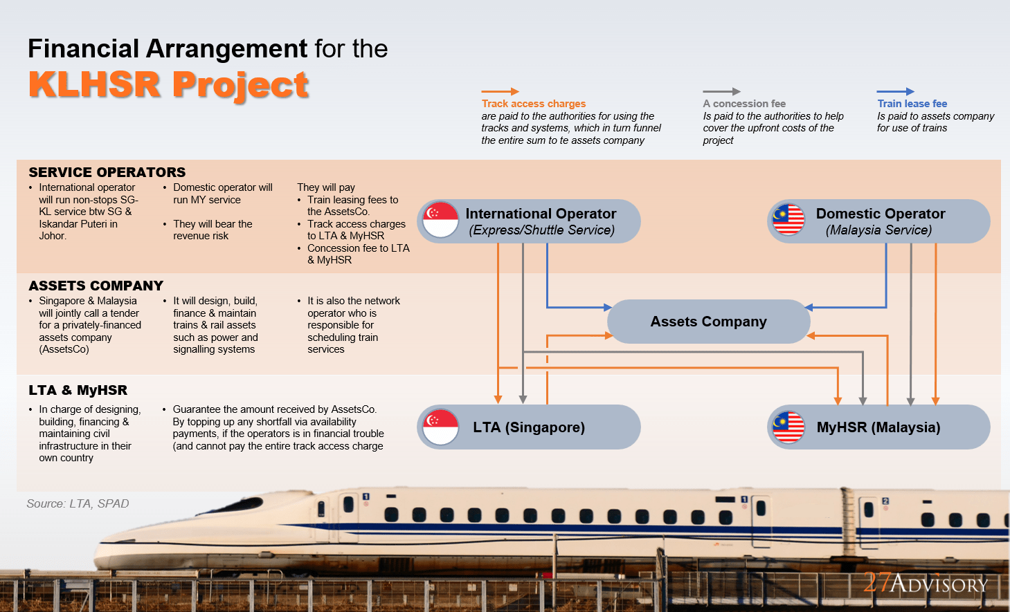 • The operators would be expected to bear revenue risks, pay a train leasing fee to the asset company, and pay track charges and concessions fees to MyHSR and LTA